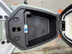 Phía dưới yên xe là khoang chứa đồ vừa vặn để áo mưa, túi xách hoặc bộ sạc. Sàn để chân được thiết kế phẳng, rộng, tạo cảm giác thoải mái khi di chuyển đường dài, đồng thời hỗ trợ người lái giữ tư thế cân bằng và dễ chịu hơn.